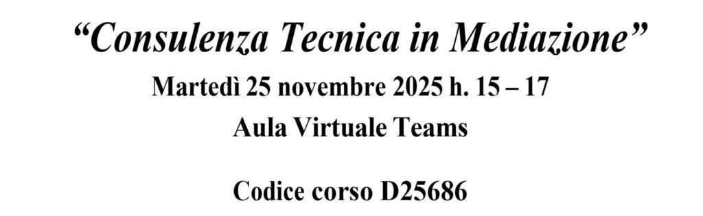 Il tema sarà “Consulenza Tecnica in Mediazione” e anche questa volta il corso sarà organizzato in collaborazione con la Formazione Decentrata della Scuola Superiore della Magistratura e garantirà i crediti formativi.